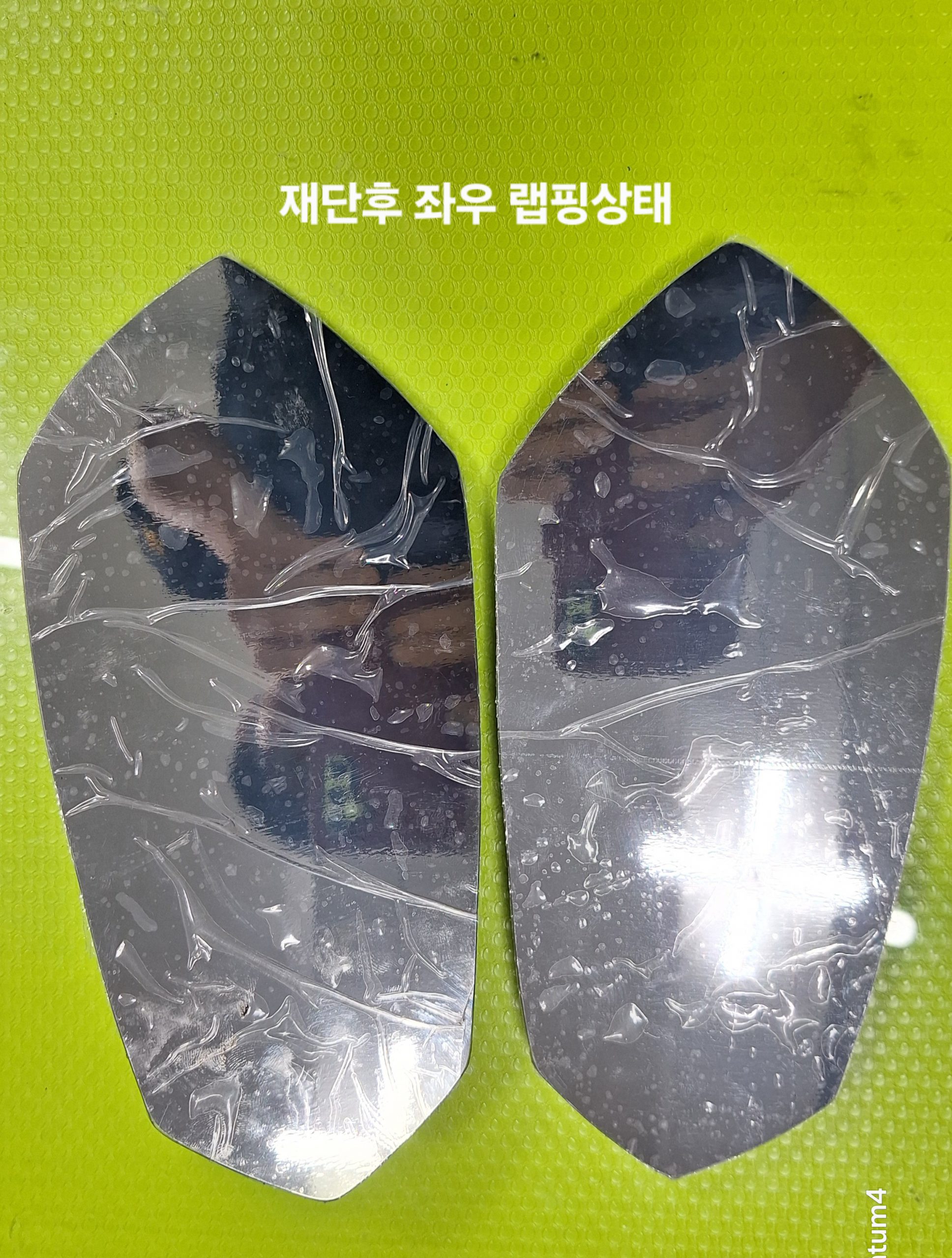 2025/09/08. 거래처 수입명차 전문수리점에서 람보르기니,아벤타도르 사이드미러 운전석 글라스가  파손되어 그대로 재단하여 작업한 것입니다. 기존의 그라스가 대만산으로 추정되는 청색빛으로 약간 어두워 보여 같은 색으로 통일시켜 좌.우 세트로 작업한 것입니다.람보르기니,포르쉐,벤트리 등등은 소위 명품차량의 사이디미러 유리탈거 작업이 난이도가 있습니다.이유는 측면의 틈이 너무 좁아 많은 경험으로 터득하는 수준입니다. 작업한 과정의 이미지를 첨부하였습니다. 사진은 유리보호를 위해 랩핑으로 선명도가 떨어집니다.